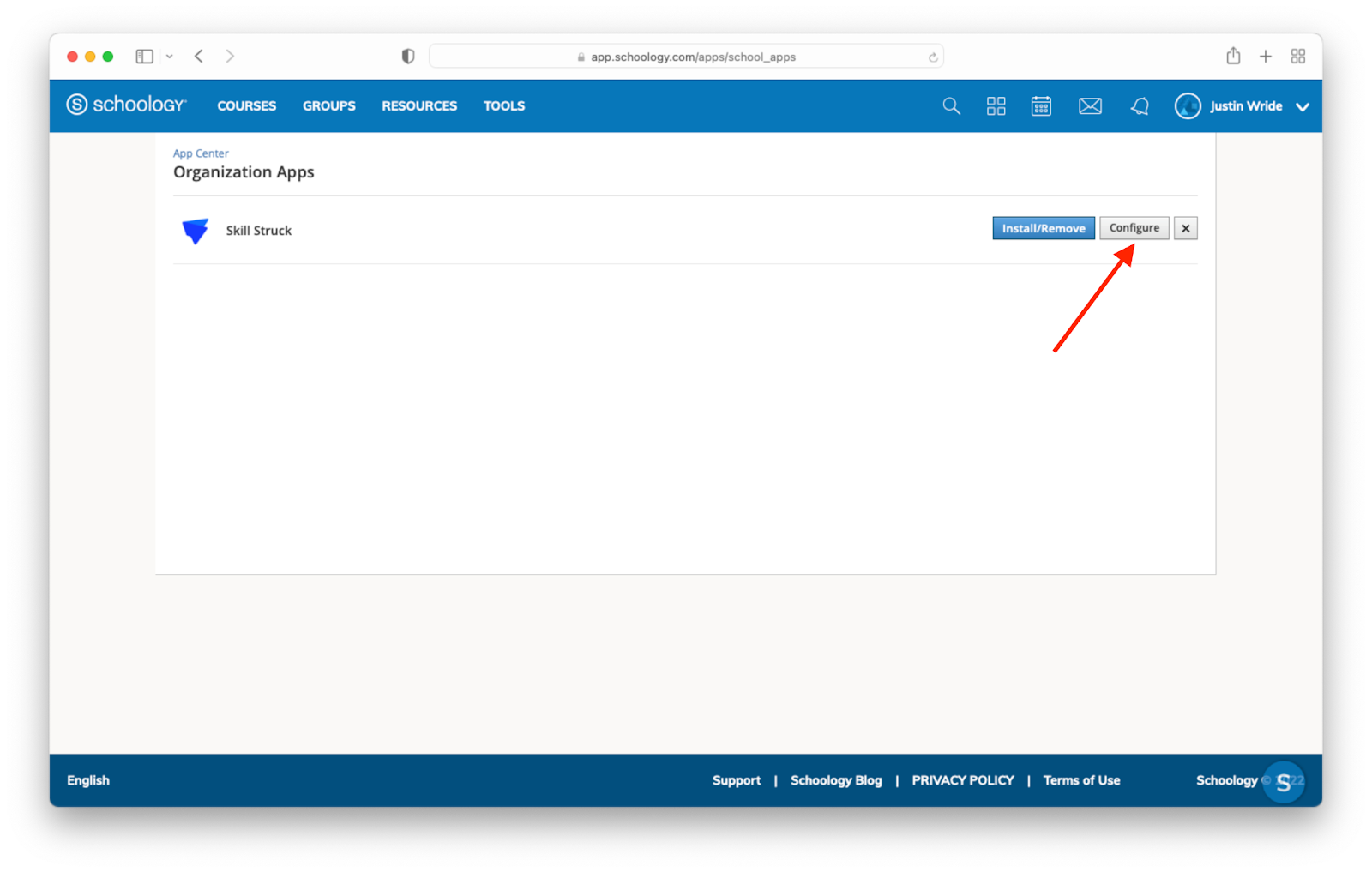 - Once this app has been added to your "Organization Apps", click "Configure" on the Skill Struck app